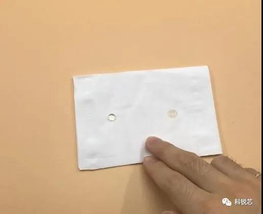 2. 酒滴在紙巾上,酒液略緩慢地均勻暈開(kāi),周邊淺的水跡很小。酒液緩慢暈開(kāi)是好醬酒的一個(gè)明顯的標(biāo)志。酒精和水的比重不同,散開(kāi)的速度也不同,而酒液經(jīng)過(guò)長(zhǎng)期密封、發(fā)酵后,酒曲的先天發(fā)酵作用開(kāi)始充分顯現(xiàn),酒曲的核心因子,直接決定了酒水和酯化物的融合度。越是好酒,融合度越高,酒液和水融合完美,周邊水跡就會(huì)很小。