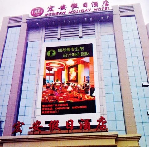 > 宏安假日酒店室外P10全彩屏